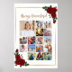 Memorial Photo Collage Red Roses With Golden Frame Poster