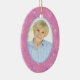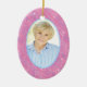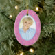 Memorial Pink Blue Stripes Oval Photo Christmas Ceramic Ornament