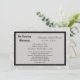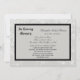 Looking for a memorial service invitation with a classic touch? This design is such an invitation. Featuring the classic colours of grey and black, the design is sure to please you. The words "In Loving Memory" appear to the left with a place for you to customise the memorial service invitation with the name of your loved one and the dates. Below you can customise with the family relations and then the specific details of the memorial service. A beautiful way to invite guests to a beautiful memorial service celebration. Copyright sympathythankyou