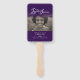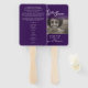Dark purple funeral program order of service double-sided simple in our hearts forever ceremony program fans. Simple yet elegant style program fan ideal for a summer memorial service to keep your guests cool informed and give them a keepsake of person whom they are remembering. Simply replace sample text and photo holder with your own special photo and funeral service information details. Original typography and in our hearts forever graphic design by Sarah Trett. www.sarahtrett.com for www.mylittleeden.com (Photo credit by Guilherme Stecanella on Unsplash model photo is just a placeholder image for you to replace).