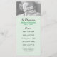 Memorial service or Celebration of Life event program card and keepsake. Customise all text; if you don't need a field just delete it. Replace the placeholder photo with your own. Change the background colour if you like. If you have a lot of text you can use "add text" on the back of the card for a biography, obituary, favourite quotes, or other material. This can also be used as an invitation to the event.