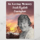 A program for a memorial service features a red sunset behind trees as the background. A photo of the deceased loved one that has the background removed is featured in the lower right corner. "In Loving Memory" and the name of the deceased is written on the front. On the back is the Order of Services and the names of the Pallbearers. The quote, "When someone you love becomes a memory, the memory becomes a treasure," is displayed at the bottom of the backside. All text and photos are set up as templates to be personalised. If you need help personalising, please contact me.