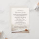 A memorial service invitation for an ash scattering at sea, with a seashell lying on the beach.