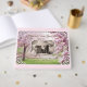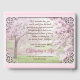 A simple, elegant, classic frame design for a classy, personalised memorial service or other commemorative event. Paper cutout style in pale pink with beautiful flowering magnolia trees and lake landscape in the background. Perfect for Spring but will also work year-round. Replace the sample portrait photo and text with your own.