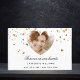 A stylish white background with golden hearts. With the text: Forever in our hearts, written with an elegant hand lettered style script. Add a name and dates, a photo inside the heart shaped frame. Use a square photo for best result.
