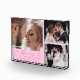 Modern and elegant family memory photo block featuring 3 photos with a text that says "Memories made with love." Perfect as your wedding keepsake. Orange pink.