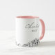 Memphis wedding personalised coffee mug. The design showcases a stunning sketch with the ability to personalise with your name or the names of your bridesmaids, guests, or others. Easily update the mug size and colour to your liking.