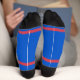 These socks proudly display the flag of Guam, known for its symbolic design representing the Chamorro culture and heritage. The flag features a dark blue field with a narrow red border and a central red stripe, symbolising courage and resilience. In the centre of the flag is a prominent white shape known as a "flying proa," a traditional sailing canoe used by the Chamorro people.