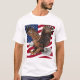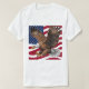A majestic eagle in mid-flight, its wings fully spread out & The background is vibrant,american flag .
