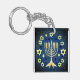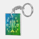 Menorah and Stars Blue and Green Keychain