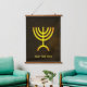 A brown and gold digital rendering of the Jewish seven-branched menorah (Hebrew: מְנוֹרָה). Customise by adding your own text. The seven-branched menorah, used in the portable sanctuary set up by Moses in the wilderness and later in the Temple in Jerusalem, has been a symbol of Judaism since ancient times and is the emblem on the coat of arms of the modern state of Israel. The kohanim lit the menorah in the Sanctuary every evening and cleaned it out every morning, replacing the wicks and putting fresh olive oil into the cups. It has been said that the menorah is a symbol of the nation of Israel and our mission to be "a light unto the nations." (Isaiah 42:6). Our sages emphasize that light is not a violent force; Israel is to accomplish its mission by setting an example, not by using force. This idea is highlighted in the vision in Zechariah 4:1-6. Zechariah sees a menorah, and G-d explains: "Not by might, nor by power, but by My spirit." G-d revealed the design for the menorah to Moses as follows (Exodus 25:31-40): 31 And you must make a lampstand of pure gold. Of hammered work the lampstand is to be made. Its base, its branches, its cups, its knobs and its blossoms are to proceed out from it. 32 And six branches are running out from its sides, three branches of the lampstand from its one side and three branches of the lampstand from its other side. 33 Three cups shaped like flowers of almond are on the one set of branches, with knobs and blossoms alternating, and three cups shaped like flowers of almond on the other set of branches, with knobs and blossoms alternating. This is the way it is with the six branches running out from the lampstand. 34 And on the lampstand are four cups shaped like flowers of almond, with its knobs and its blossoms alternating. 35 And the knob under two branches is out of it and the knob under the two other branches is out of it and the knob under two more branches is out of it, for the six branches running out from the lampstand. 36 Their knobs and their branches are to proceed out from it. All of it is one piece of hammered work, of pure gold. 37 And you must make seven lamps for it; and the lamps must be lit up, and they must shine upon the area in front of it. 38 And its snuffers and its fire holders are of pure gold. 39 Of a talent of pure gold he should make it with all these utensils of it. 40 And see that you make them after their pern that was shown to you in the mountain. Until 2009, the earliest preserved representation of the menorah of the Temple was depicted in a frieze on the Arch of Titus, commemorating his triumphal parade in Rome following the destruction of Jerusalem in the year 70. In 2009, however, the ruins of a synagogue with pottery dating from before the destruction of the Second Temple were dised under land in Magdala owned by the Legionaries of Christ, who had intended to construct a centre for women's studies. Inside that synagogue's ruins was discovered a rectangular stone, which had on its surface, among other ornate carvings, a depiction of the seven-branched menorah differing markedly from the depiction on the Arch of Titus, probably carved by an eyewitness to the actual menorah present at the time in the Temple at Jerusalem. This menorah has arms which are polygonal, not rounded, and the base is not graduated but triangular. Representations of the seven branched artefact have been found on tombs and monuments dating from the 1st century as a frequently used symbol of Judaism and the Jewish people. Contrary to some modern designs, the ancient menorah did not contain anything resembling seven candles as they did not exist then.