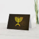 A general-purpose Jewish greeting card featuring a digital rendering of the Jewish seven-branched menorah (Hebrew: מְנוֹרָה). The seven-branched menorah, used in the portable sanctuary set up by Moses in the wilderness and later in the Temple in Jerusalem, has been a symbol of Judaism since ancient times and is the emblem on the coat of arms of the modern state of Israel. The kohanim lit the menorah in the Sanctuary every evening and cleaned it out every morning, replacing the wicks and putting fresh olive oil into the cups. It has been said that the menorah is a symbol of the nation of Israel and our mission to be "a light unto the nations." (Isaiah 42:6). Our sages emphasize that light is not a violent force; Israel is to accomplish its mission by setting an example, not by using force. This idea is highlighted in the vision in Zechariah 4:1-6. Zechariah sees a menorah, and G-d explains: "Not by might, nor by power, but by My spirit." G-d revealed the design for the menorah to Moses as follows (Exodus 25:31-40): 31 And you must make a lampstand of pure gold. Of hammered work the lampstand is to be made. Its base, its branches, its cups, its knobs and its blossoms are to proceed out from it. 32 And six branches are running out from its sides, three branches of the lampstand from its one side and three branches of the lampstand from its other side. 33 Three cups shaped like flowers of almond are on the one set of branches, with knobs and blossoms alternating, and three cups shaped like flowers of almond on the other set of branches, with knobs and blossoms alternating. This is the way it is with the six branches running out from the lampstand. 34 And on the lampstand are four cups shaped like flowers of almond, with its knobs and its blossoms alternating. 35 And the knob under two branches is out of it and the knob under the two other branches is out of it and the knob under two more branches is out of it, for the six branches running out from the lampstand. 36 Their knobs and their branches are to proceed out from it. All of it is one piece of hammered work, of pure gold. 37 And you must make seven lamps for it; and the lamps must be lit up, and they must shine upon the area in front of it. 38 And its snuffers and its fire holders are of pure gold. 39 Of a talent of pure gold he should make it with all these utensils of it. 40 And see that you make them after their pattern that was shown to you in the mountain. Until 2009, the earliest preserved representation of the menorah of the Temple was depicted in a frieze on the Arch of Titus, commemorating his triumphal parade in Rome following the destruction of Jerusalem in the year 70. In 2009, however, the ruins of a synagogue with pottery dating from before the destruction of the Second Temple were discovered under land in Magdala owned by the Legionaries of Christ, who had intended to construct a centre for women's studies. Inside that synagogue's ruins was discovered a rectangular stone, which had on its surface, among other ornate carvings, a depiction of the seven-branched menorah differing markedly from the depiction on the Arch of Titus, probably carved by an eyewitness to the actual menorah present at the time in the Temple at Jerusalem. This menorah has arms which are polygonal, not rounded, and the base is not graduated but triangular. Representations of the seven branched artefact have been found on tombs and monuments dating from the 1st century as a frequently used symbol of Judaism and the Jewish people. Contrary to some modern designs, the ancient menorah did not contain anything resembling seven candles as they did not exist then.