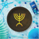 A brown and gold digital rendering of the Jewish seven-branched menorah (Hebrew: מְנוֹרָה). The seven-branched menorah, used in the portable sanctuary set up by Moses in the wilderness and later in the Temple in Jerusalem, has been a symbol of Judaism since ancient times and is the emblem on the coat of arms of the modern state of Israel. The kohanim lit the menorah in the Sanctuary every evening and cleaned it out every morning, replacing the wicks and putting fresh olive oil into the cups. It has been said that the menorah is a symbol of the nation of Israel and our mission to be "a light unto the nations." (Isaiah 42:6). Our sages emphasize that light is not a violent force; Israel is to accomplish its mission by setting an example, not by using force. This idea is highlighted in the vision in Zechariah 4:1-6. Zechariah sees a menorah, and G-d explains: "Not by might, nor by power, but by My spirit." G-d revealed the design for the menorah to Moses as follows (Exodus 25:31-40): 31 And you must make a lampstand of pure gold. Of hammered work the lampstand is to be made. Its base, its branches, its cups, its knobs and its blossoms are to proceed out from it. 32 And six branches are running out from its sides, three branches of the lampstand from its one side and three branches of the lampstand from its other side. 33 Three cups shaped like flowers of almond are on the one set of branches, with knobs and blossoms alternating, and three cups shaped like flowers of almond on the other set of branches, with knobs and blossoms alternating. This is the way it is with the six branches running out from the lampstand. 34 And on the lampstand are four cups shaped like flowers of almond, with its knobs and its blossoms alternating. 35 And the knob under two branches is out of it and the knob under the two other branches is out of it and the knob under two more branches is out of it, for the six branches running out from the lampstand. 36 Their knobs and their branches are to proceed out from it. All of it is one piece of hammered work, of pure gold. 37 And you must make seven lamps for it; and the lamps must be lit up, and they must shine upon the area in front of it. 38 And its snuffers and its fire holders are of pure gold. 39 Of a talent of pure gold he should make it with all these utensils of it. 40 And see that you make them after their pern that was shown to you in the mountain. Until 2009, the earliest preserved representation of the menorah of the Temple was depicted in a frieze on the Arch of Titus, commemorating his triumphal parade in Rome following the destruction of Jerusalem in the year 70. In 2009, however, the ruins of a synagogue with pottery dating from before the destruction of the Second Temple were dised under land in Magdala owned by the Legionaries of Christ, who had intended to construct a centre for women's studies. Inside that synagogue's ruins was discovered a rectangular stone, which had on its surface, among other ornate carvings, a depiction of the seven-branched menorah differing markedly from the depiction on the Arch of Titus, probably carved by an eyewitness to the actual menorah present at the time in the Temple at Jerusalem. This menorah has arms which are polygonal, not rounded, and the base is not graduated but triangular. Representations of the seven branched artefact have been found on tombs and monuments dating from the 1st century as a frequently used symbol of Judaism and the Jewish people. Contrary to some modern designs, the ancient menorah did not contain anything resembling seven candles as they did not exist then.