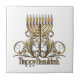Elegant nine-branched candelabrum menorah celebrating the Jewish holiday festival of Hanukkah. Art of Margaret Loftin Whiting.