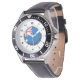 My husband loves the watch, he likes the dial, the graphics, the band, and it keeps perfect time.