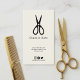 Simple stylish and professional men's barber business card that features a simple and eye-catching scissors illustration logo with your business. The clean and modern minimal design is perfect for any barber or mens hair designer who wants to make a lasting impression on their clients. The card also has space for your social media logos and handles.
