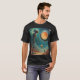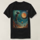A giant robotic creature and a glowing orb hover over an alien landscape in this cool sci-fi t-shirt design.