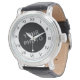 A mens custom watch with roman numerals and your image. Upload your image to the watch face. It will be placed behind the roman numerals that lie on the white background around the circumference. You can move and resize the image to fit the space available. The black image background can be removed if the uploaded image has a white or light background. You can then change the style of watch from the list of styles on the product page if you wish.