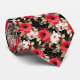 This men's dress tie is shown in a lovely black and red multi colour floral print design.