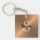 Mens Elegant Bronze Gold Script Monogram Keychain makes a great gift idea for a man on any occasion. Keychain is designed with a masculine bronze gold metallic background and light tan brown monogram initial on the center and calligraphy script lettering personalize name.