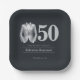 Celebrate a milestone in timeless style with this elegant 50th birthday plates. Featuring a luxurious black background and a bold silver tuxedo graphic, the design pairs classic sophistication with modern simplicity. The striking “50” detail sets the tone for a refined evening, while party information is displayed in a graceful serif font for a polished finish. Perfect for a formal birthday celebration, black-tie event, or upscale soirée.