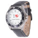 Men's Stainless Steel Black Leather Strap Watch I Heart