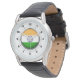 Men's India Flag Crown Black Leather Strap Watch