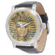 Mens King Tut Egyptian Black Leather Strap Watch