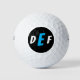 Never lose your ball again with these three-initial monogram golf balls. This design features a modern font in white and blue against a black background.
