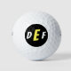 Never lose your ball again with these three-initial monogram golf balls. This design features a modern font in white and yellow against a black background.