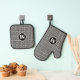 Mens Monogram Black Greek Key Meander Pattern Oven Mitt & Pot Holder Set