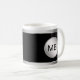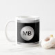 Coffee mug with masculine appeal that includes a metal looking monogram emblem you can make your own by personalising it with your name or initials. The black and silver classy design lets you drink your coffee with character and style and is designed for personal or business professionas