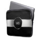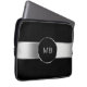 Cool men's monogram laptop case in silver and black with monogram emblem you can personalise with your name initials and is appropriate for business professional or personal use.