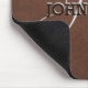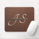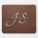 Men's Trendy Monogram Mouse Mat. Design features of monogram and your name on a brown leather texture imitation background. (No real leather will be used) Add your contact details on the back. Perfect gift for him.