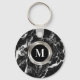 Mens keychains with monogram initial you can personalise with your own. Designed with a digitally printed stone marble background pattern and classy monogram emblem silver and black coloured in style.