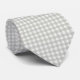 Men's tie is shown in a lovely Putty Grey and White gingham plaid print.