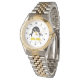 The watch is very nice, the picture is great and the watch looks like quality. The only problem I am having with it is that it is a little too large, and I also can't figure out how to open the clasp. No directions came with it. Very good. The printing is perfect and the watch keeps good time.