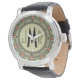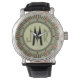 Elegant and classy, clean and simple customised monogrammed watches for the special man on your gift list. Classic but modern style red and black hash marks on military olive camo green and khaki face. Bold monogram initials in art deco Gatsby style for the sophisticated gentlemen -- click Customise It to change the font sizes, style or colours. Novelty monogram watches make a perfect personalised gift for birthdays, anniversary, graduation, retirement, wedding party attendants, holidays, and other milestone celebrations.