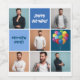 Mens Photo Collage Custom Blue Birthday Party Wine Label