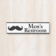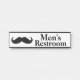 Men's restroom door name plate with graphics of a black moustache on the left side. Black custom text can be personalised to read what you want.