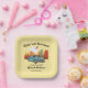 Our "Rollin’ into Retirement" plate feature a classic blue car driving into a vibrant retro desert mountains sunset, setting the perfect scene for a retirement celebration. The elegant serif font for party details ensures your plate stand out. Perfect for families and staff members planning a memorable event. Don’t miss out—order your plate today and cruise on over to a fabulous party!