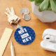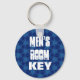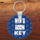 This design with its blue patterned background and trendy bold lettering is a practical yet stylish key chain for the men's room.