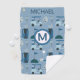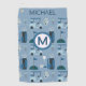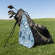 Something special for the gentleman who enjoys his game of golf and being just a bit unique -- this stylish blue design golf towel -- complete with carts and balls. Personalised with his custom monogram and first name. Any design questions just send a chat and we'll be glad to help.