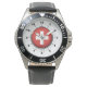Men's Stainless Steel Black Leather Strap Watch Switzerland Flag
