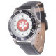Men's Switzerland Flag Black Leather Strap Watch