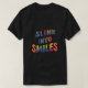 The "Slink into Smiles." t-shirt design features a vibrant, multi-coloured text graphic with a playful, whimsical font. The phrase "Slink into Smiles" is written in a large, bold font, with the letters curving and flowing in a way that evokes a sense of movement and joy. The colours used in the design are bright and cheerful, further enhancing the overall positive vibe of the shirt.
