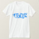 Men's t-shirt is shown in white with a blue colour Vegas print.