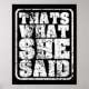 Mens Thats What She Said Funny Quotes Statement Re Poster