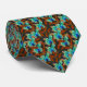 This men's dress tie is shown in a blue and rust multi colour floral print.