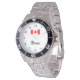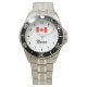 Men's watches with custom name and Canadian flag. Cool watches with flag of Canada. Patriotic maple leaf design. Great personalised Birthday gift idea for Canada Day. Personalizable with name or other text. Customise for men and women.